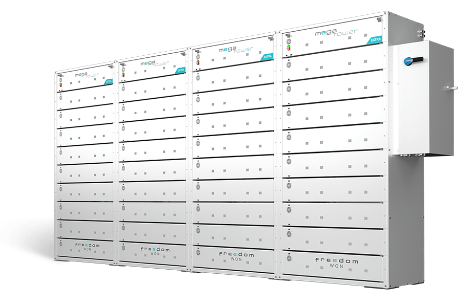 The MegaTower range includes the Plus and Extra voltage categories, built with 36.9kWh battery modules arranged in a tower configuration. Its modular design, featuring rear busbar connectors, enables rapid onsite installation exceeding 800kWh per day and streamlines maintenance for maximum efficiency.